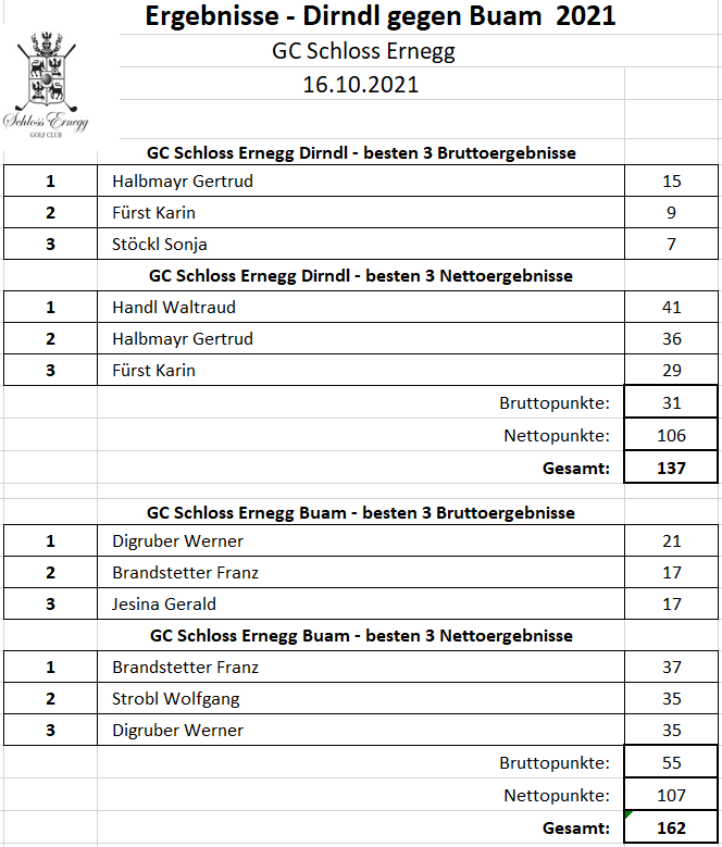 Wir vom GC Schloss Erneggs möchten uns bei Karin Fürst für die Organisation der Preise und des Turniers bedanken.